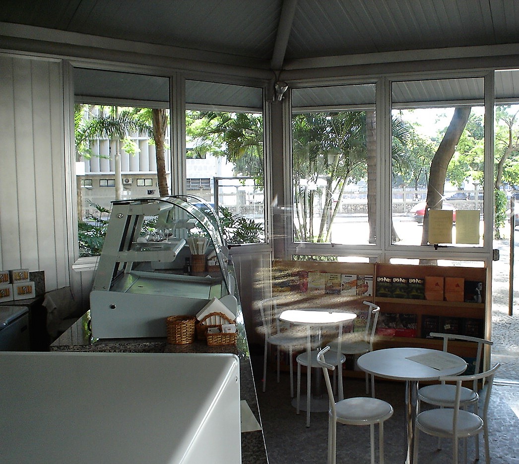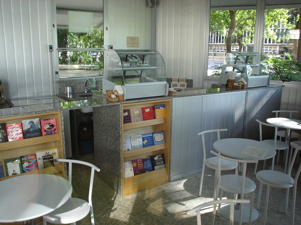 O Quiosque está situado em uma bela praça com jardins projetados por Burle Max. Este conta com um interior detalhado de forma a favorecer ao cliente um ambiente confortável e climatizado com vista de todos os ângulos da praça.
