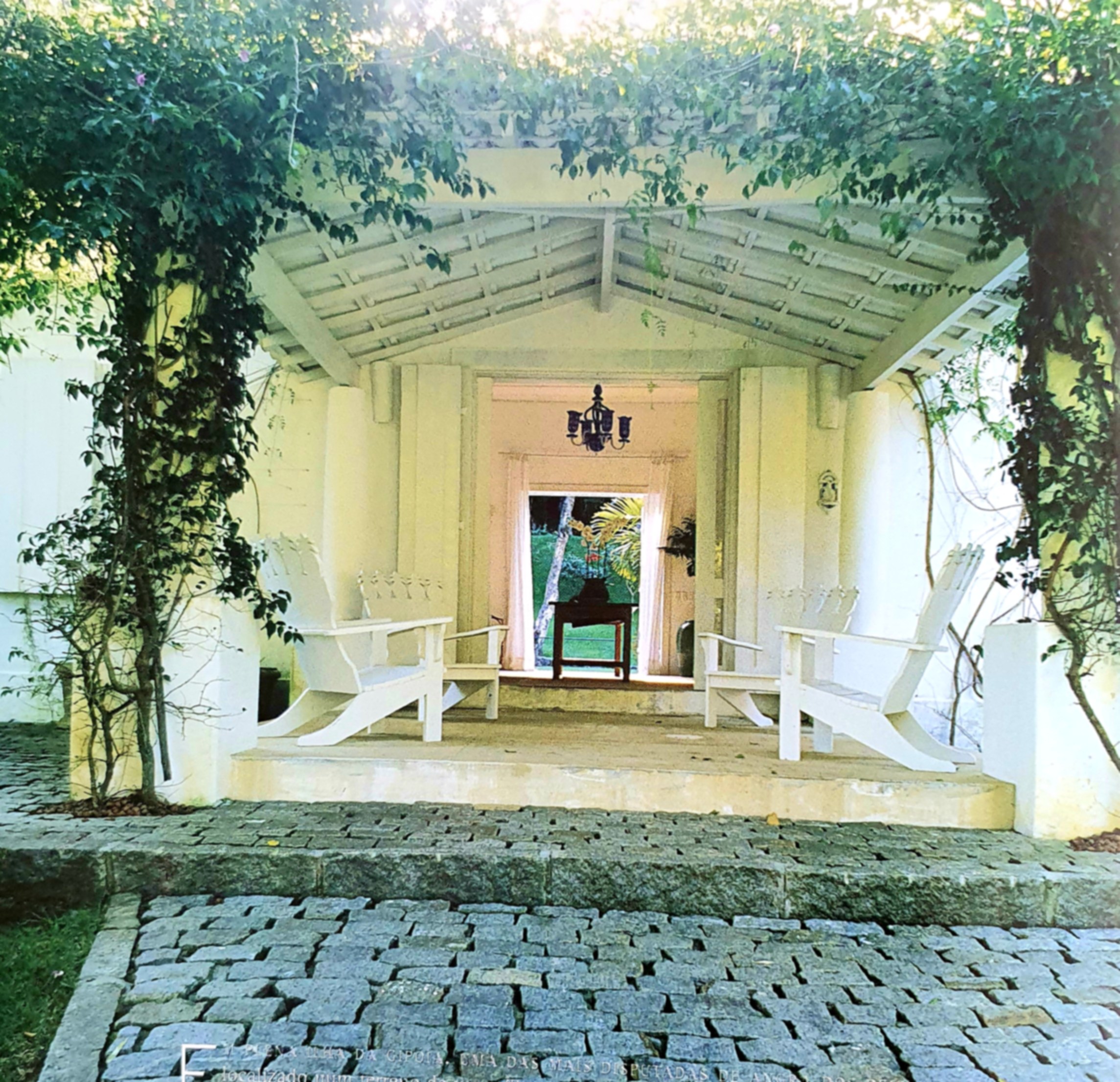 Em uma releitura do período colonial, o projeto foi elaborado totalmente voltado a preservar o meio ambiente de uma antiga plantação do século XIX. A construção foi dividida em quatro módulos conectados por alpendres – quartos, social, refeições e serviços – para conservação das árvores centenárias da região. A área de lazer é composta por campo de futebol, quadra de tênis e piscina. Tudo isso distribuído em um belíssimo paisagismo com o propósito de aproveitar o puro verde da natureza de Angra.