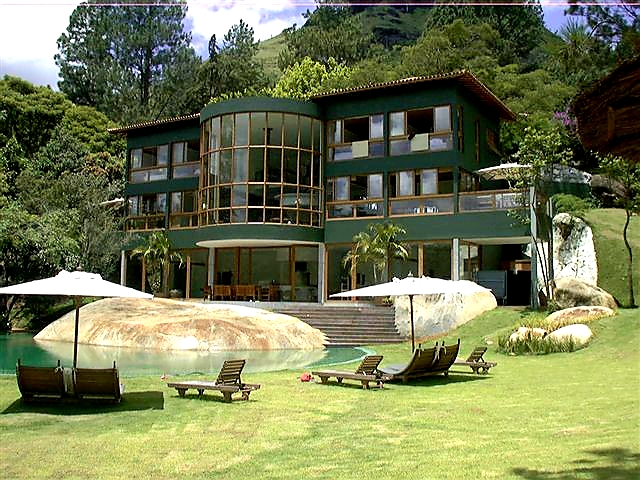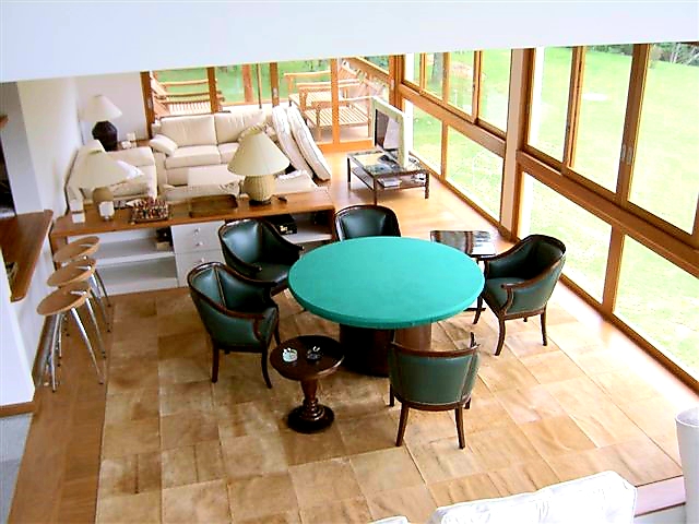 Explorando a vista do vale por diferentes ângulos do terreno em declive, o projeto foi divido em três níveis com grandes aberturas em vidro. No hall interno de chegada, temos um mezanino voltado para um grande salão de pé direito duplo com visão para a área externa da casa. Os setores – íntimo, social e lazer – foram divididos entre os pavimentos com o intuito de preservar o ponto focal do conceito: o Vale. Na área de lazer foi projetado um espaço para jacuzzi, jogos, área gourmet e piscina de borda infinita com um desenho, que incorpora uma grande pedra existente no terreno.